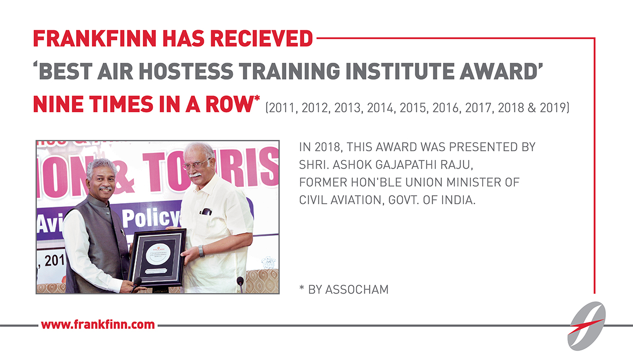 The Frankfinn name and logo are now synonymous with unique quality and quintessential service, having been widely recognized as the world’s leading Air Hostess Training Institute. This success was accomplished by devoting meticulous attention to detail while designing a work culture in which its people could flourish. The spirit of amusement that pervades every facet of the Frankfinn brand is one of its most important aspects.